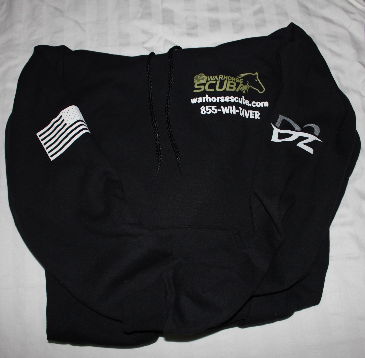 Printed design on the front and the sleeves. Only black.